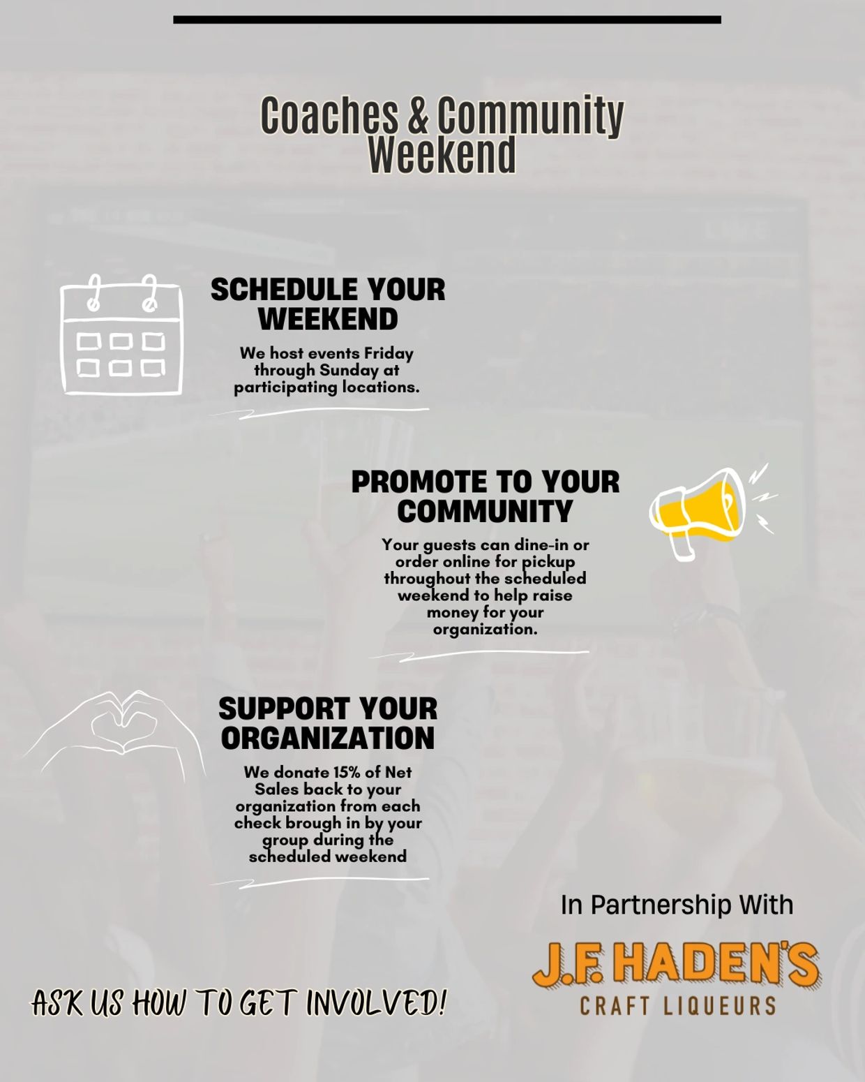 Coaches & Community Weekend is our commitment to supporting the leaders, teams, and neighborhoods that shape the next generation. By donating 15% of sales back to participating organizations, we turn every visit into an opportunity to give back and strengthen local youth programs.